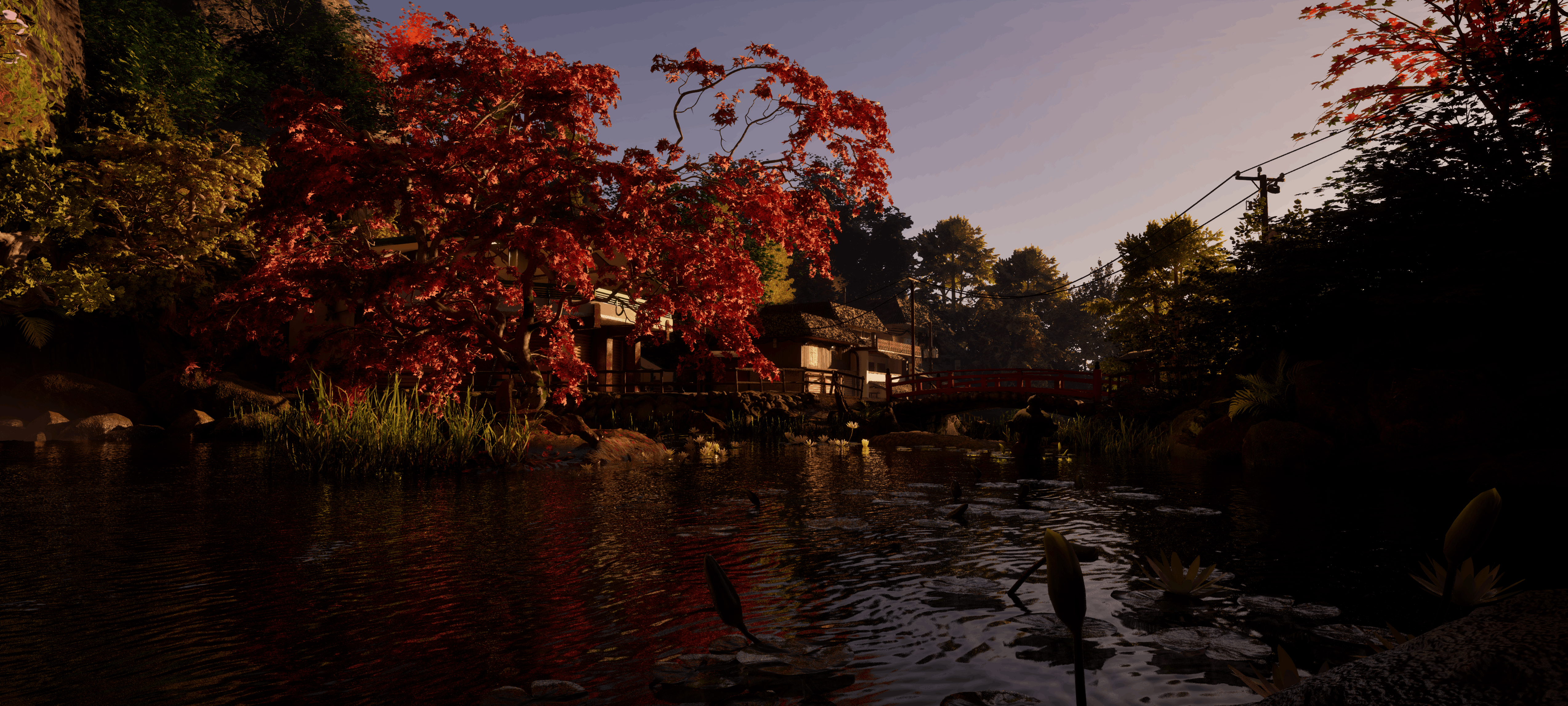 Models were made in Autodesk Maya. Textures were made in Adobe Substance and Photoshop. Animated foliage made via SpeedTree Modeler. Landscape, effects, and engine rendering done in Unreal Engine V.
